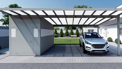 Die ideale Absicherung für Ihr Fahrzeug. Das BW Pultdach-Carport bietet Ihnen zuverlässigen Schutz vor Regen und Witterungseinflüssen. Entscheiden Sie selbst, ob Sie sich für eine freistehende oder wandmontierte Variante entscheiden möchten. Dank des Carports können Sie trocken ein- und aussteigen und im Winter auf das lästige Eiskratzen verzichten. Das bedeutet mehr Zeitersparnis, einfach einsteigen und losfahren.