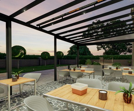 Unser Angebot an Überdachungen erstreckt sich auch auf Unternehmen. Die Einsatzmöglichkeiten reichen von überdachten Raucherbereichen über VIP-Lounges bis hin zu Fahrradüberdachungen und sämtlichen Arten von Überdachungen im Gastronomiebereich.